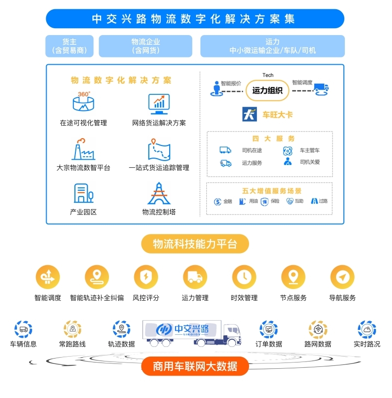 货运物流承载生产生活类经济社会基本物资的运输。其中,公路货运承担着全社会70%以上的货运量,被称为支撑经济发展的“大动脉”。12吨以上的重载货车,包括牵引车、半挂车、自卸车、特种车等是公路货运的最小单元。hth·华体会体育(中国)官方网站的物流数字化就是从这个最小单元开始,先将近千万的货车数字化,让它成为流动的数字体。