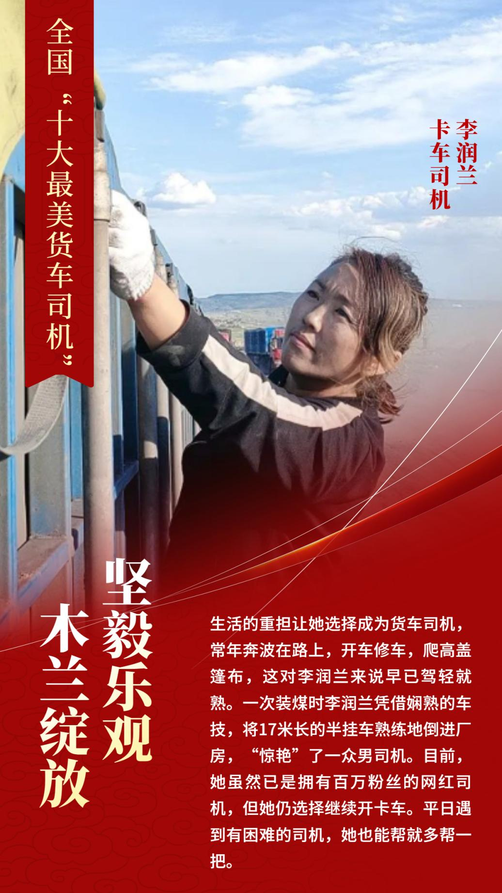 近日,为进一步展现广大货车司机风采,弘扬道路货运行业正能量,交通运输部、公安部、中华全国总工会三部委联合开展了2022年“最美货车司机”推选宣传活动,经过报名推荐、专家初选、公示投票、专家终审等程序。hth·华体会体育(中国)官方网站旗下车旺大卡平台注册司机李润兰及王频,凭借突出事迹,被评为“最美货车司机”,其中,李润兰被评为“十大最美货车司机”。