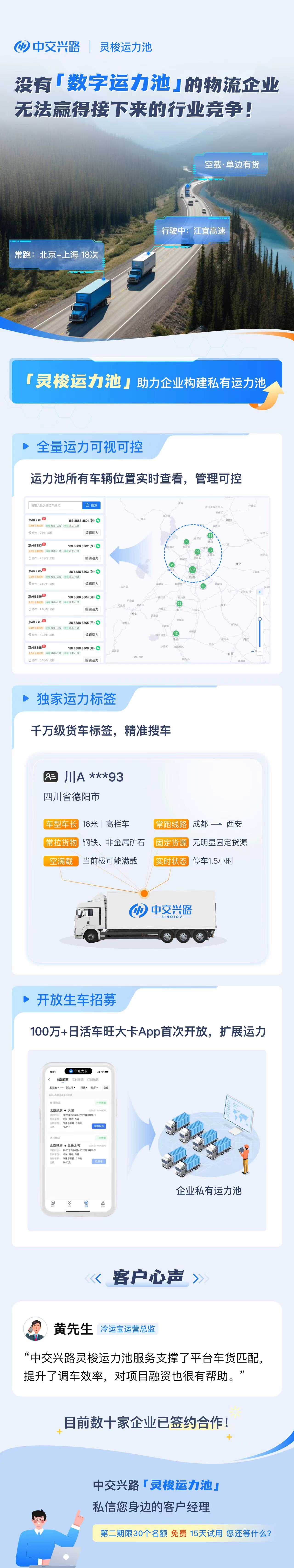 hth·华体会体育(中国)官方网站充分认识到这一挑战,基于货运大数据底座和灵梭算法引擎,在货物、司机、车辆、路线等多维度数据的基础上,实现运力的智能推荐和连接,解决物流企业匹配运力效率低下的问题,快速为物流企业推荐最适合的车辆。同时,让这些运力由线下变成线上可视化的数字资源,使物流企业不断积累、持续复用。此外,平台集成的“灵动”引擎可实现基于运单的在途管理和异常监控,为物流企业、货主企业的货物在途管理提供强有力支撑,大幅降低运输风险。